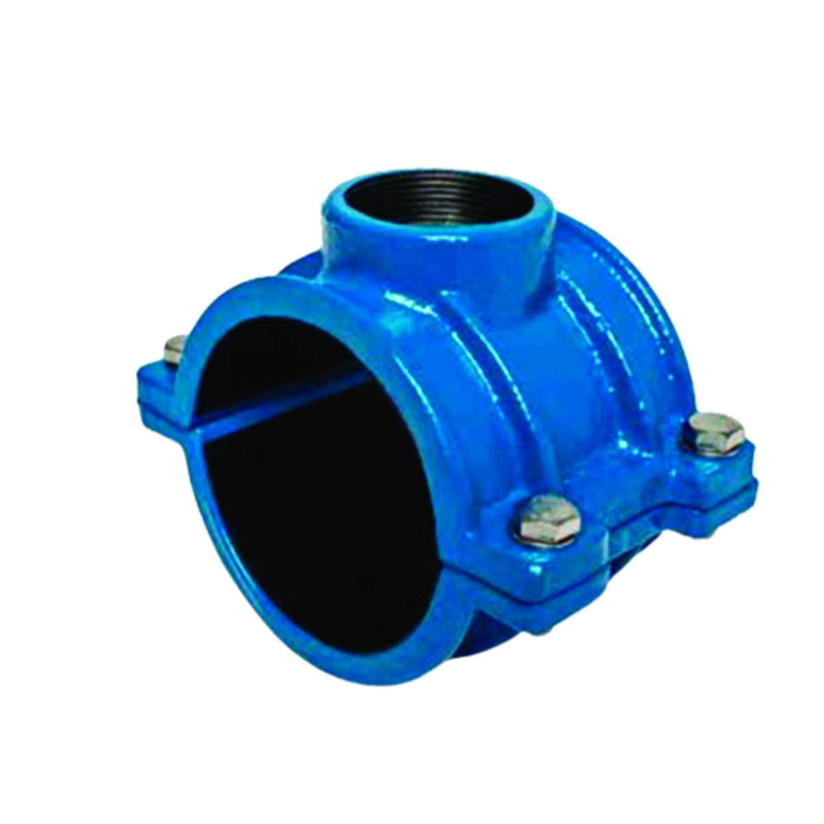Хомут чавунний врізний з ВР для ПЕ, ПВХ труб