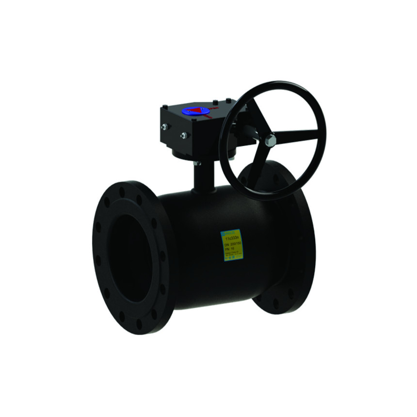 Кран кульовий сталевий 11с333п фланцевий неповнопрохідний з редуктором - вид запірної арматури, який встановлюється на трубопроводі що транспортують воду, пару, масла, нафту, рідкі неагресивні нафтопродукти, неагресивні рідкі і газоподібні середовища. Корпус крану 11с333п виконано цільнозварним з сталі 20 ДСТУ 7809, запірна куля виготовлена з нержавіючої сталі, ущільнення кулі - фторопласт. Цільнозварна конструкція та матеріал виготовлення дозволяє використовувати крани в діапазоні робочих температур від -35°С до + 180°С та робочим тиском до 40 бар. Клас герметичності – «А». Будівельна довжина та приєднувальні розміри кранів 11с33п від Ду 50, до Ду150 відповідають клиновим засувкам 30с41нж, 31ч6бк, 31ч6нж, 30ч6бр. Наявність редуктору полегшує керування краном кульовим сталевим 11с333п великих діаметрів від Ду 100мм до Ду 200мм
