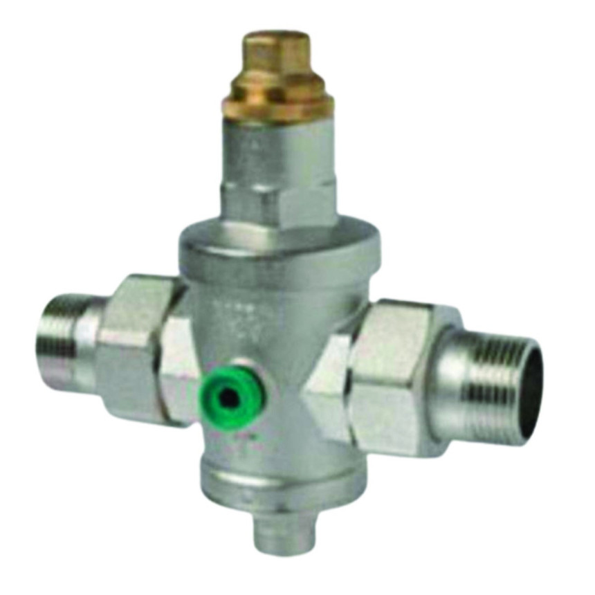Клапан редукційний  IVR 300 (редуктор тиску IVR 300) - це пристрій, що регулює та знижує підвищений тиск води в магістралі, забезпечуючи цим захист від гідроударів водопроводу, сантехніки та побутових приладів. Регулятор тиску має мініатюрні розміри, непроникний корпус з металу, отвори входу та виходу з різьбленням. Корпус виконано з латуні нікельованої, латунна диафрагма та сідло з нержавіючої сталі
